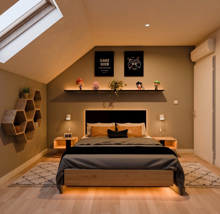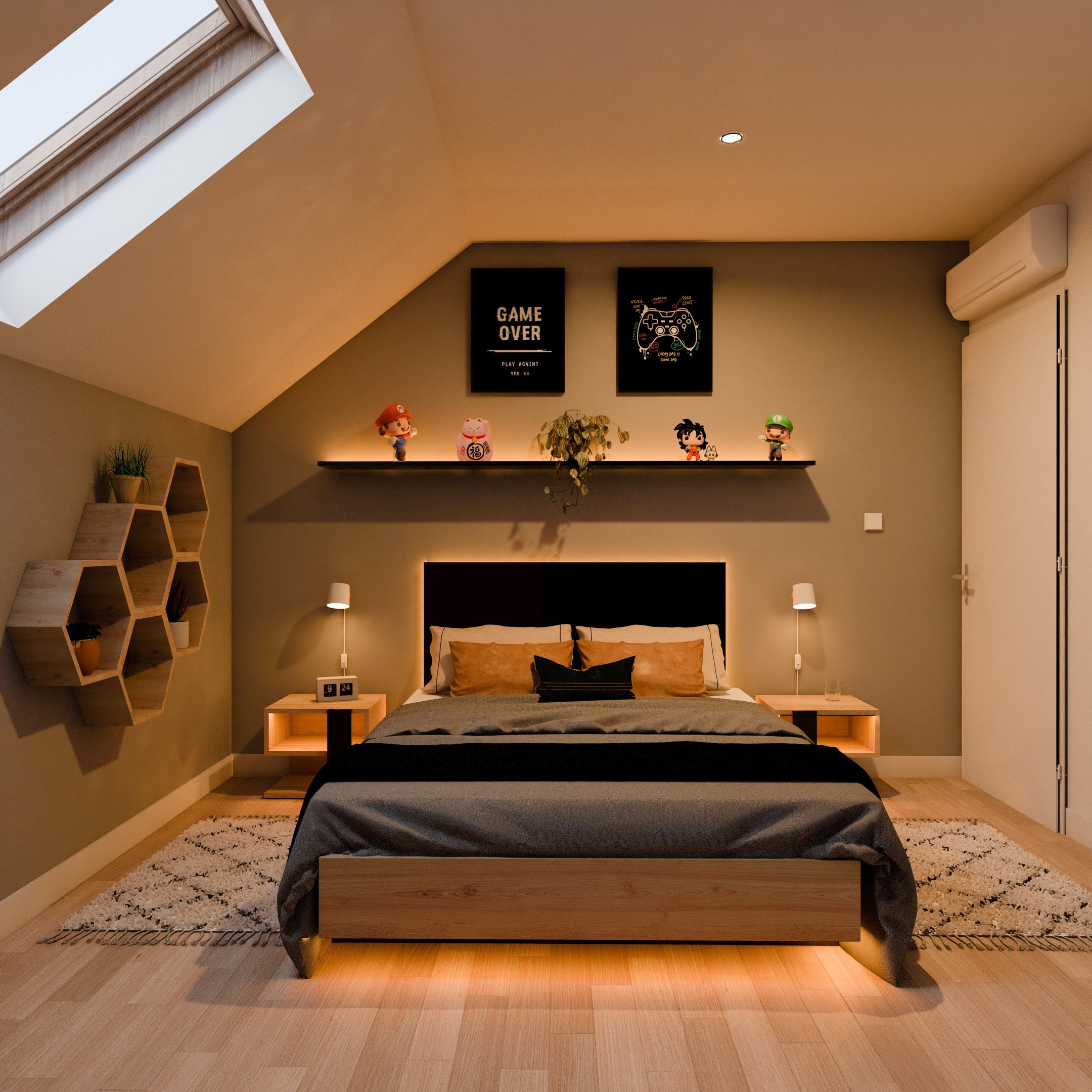 métamorphose de cette chambre ou chaque détail a été soigneusement pensé pour créer un espace à la fois moderne et chaleureux.